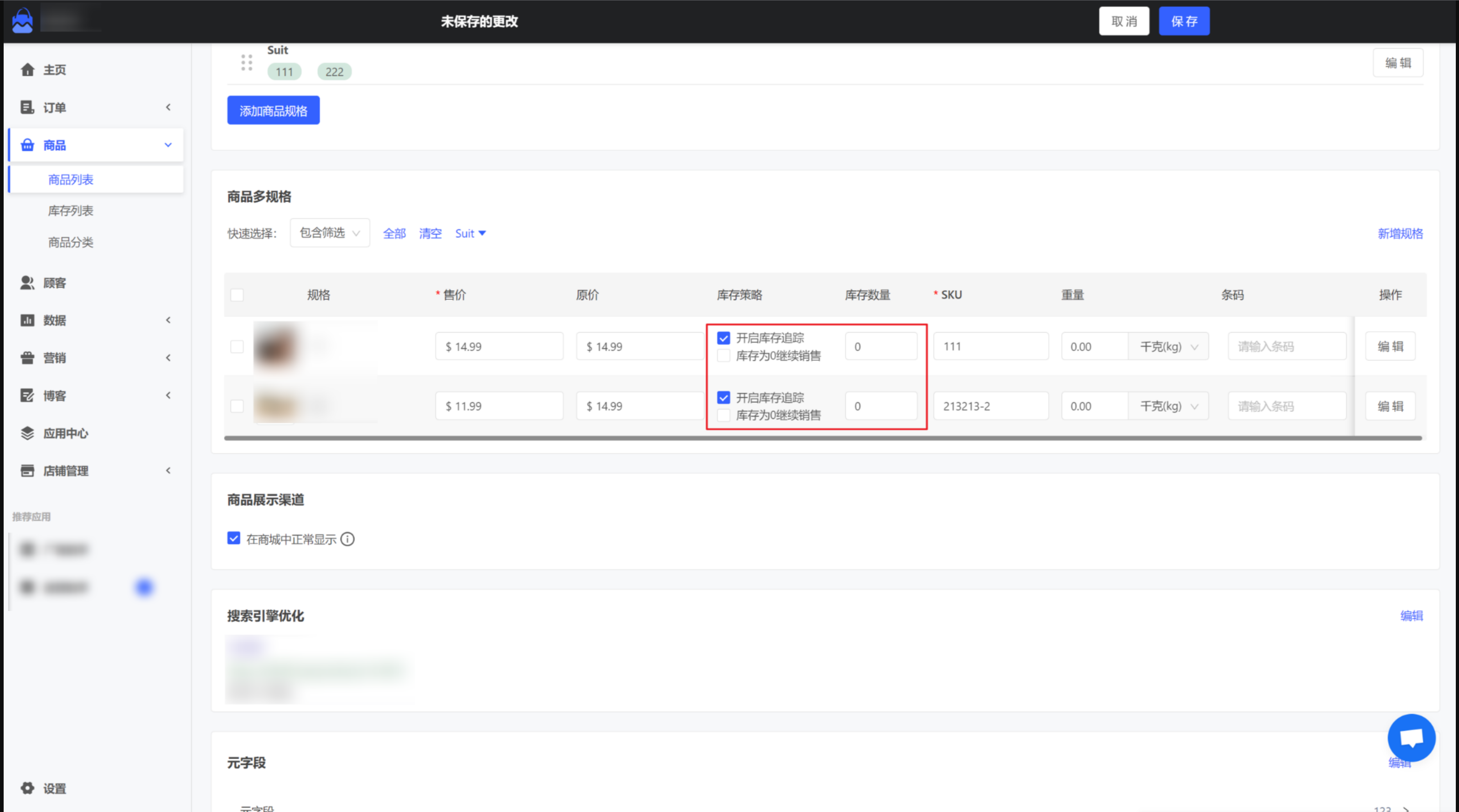 MSHOP帮助中心 常见问题 商品管理常见问题 商品如何设置为售罄? 创建于 2023年08月06日 12:35 问题:商品如何设置为售罄? 回答:在“店铺后台 > 商品 > 商品列表 > 商品详情”中进行以下配置: 1、开启库存跟踪2、关闭库存为0继续销售3、将库存设置为0