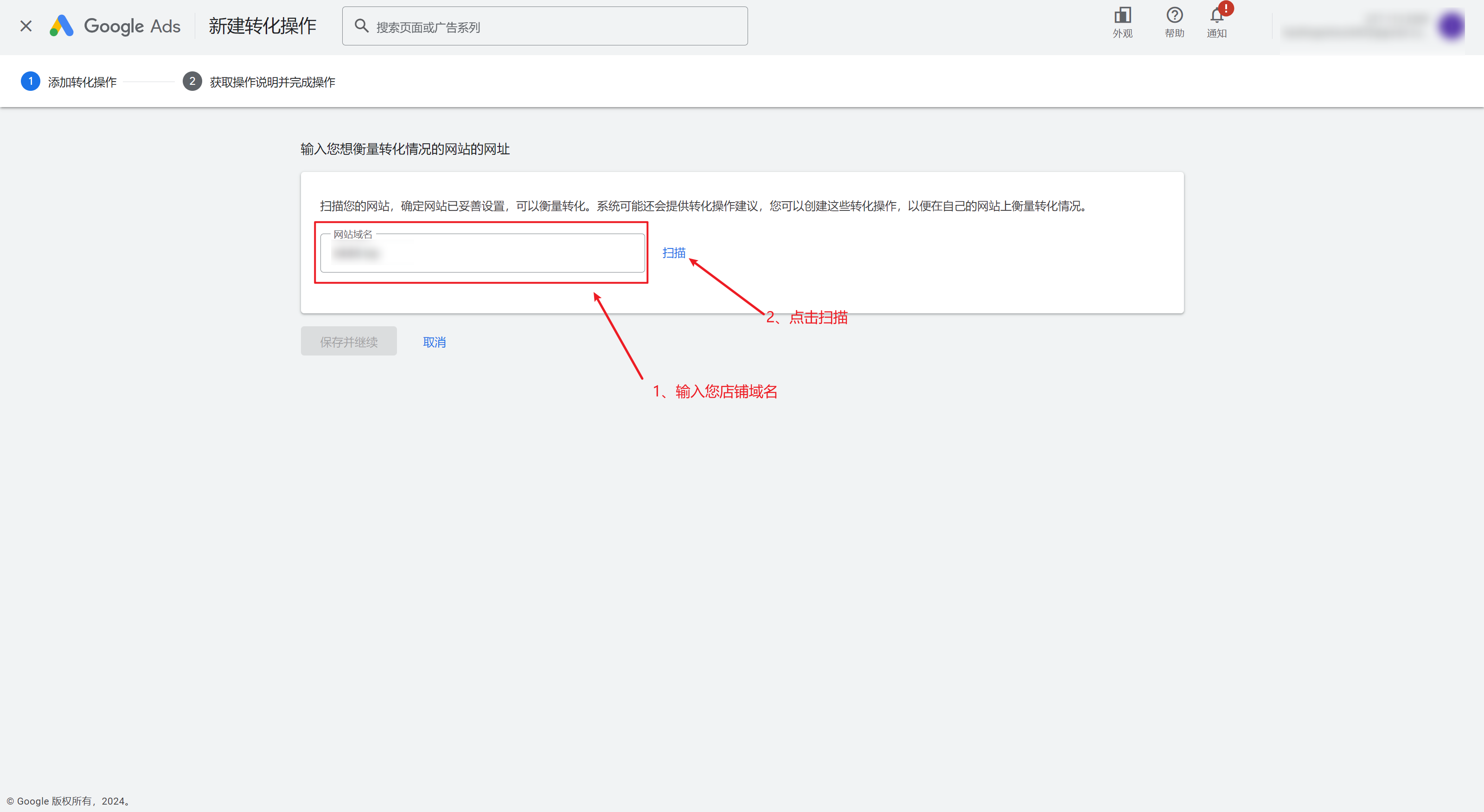 4、输入您的店铺域名,然后点击扫描