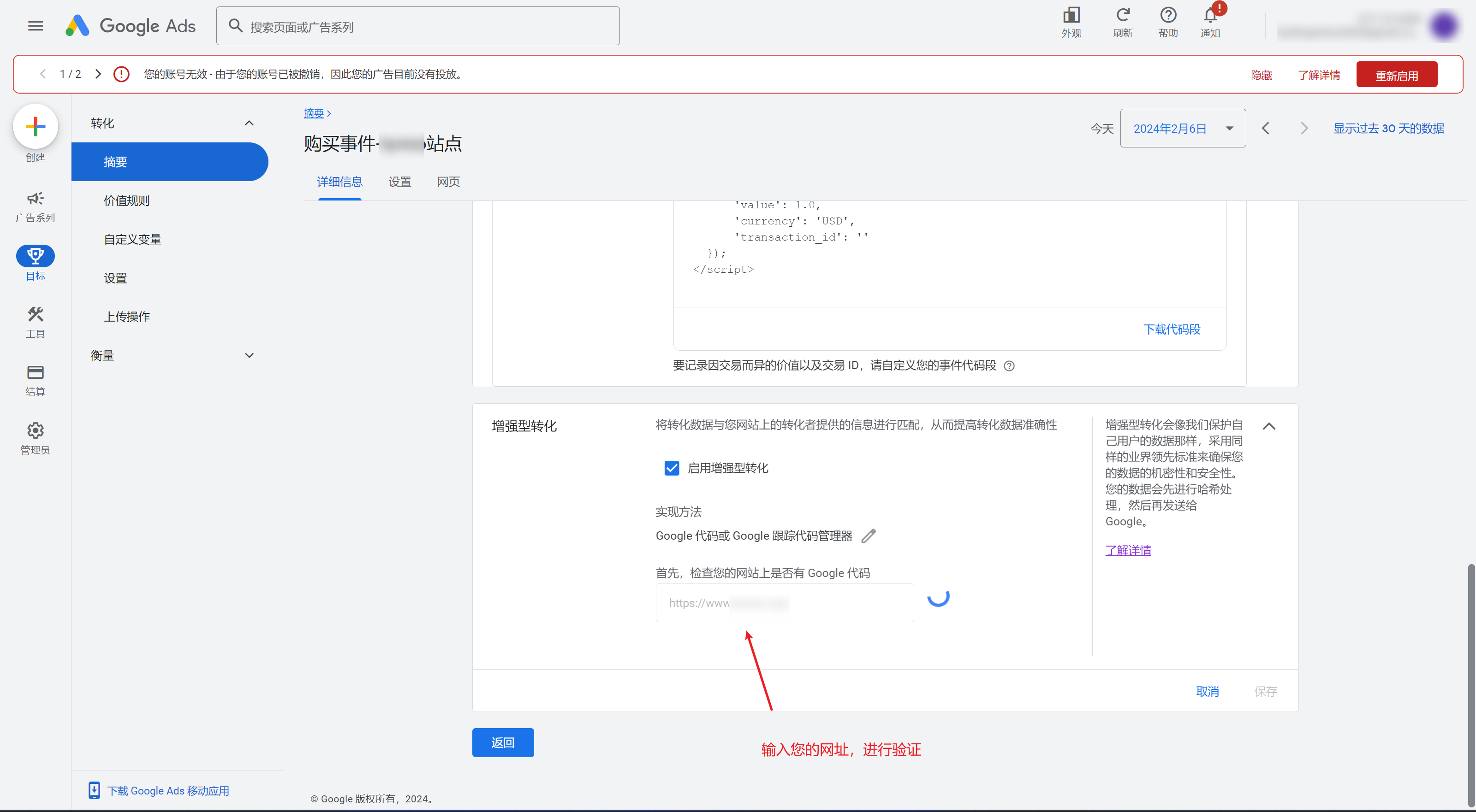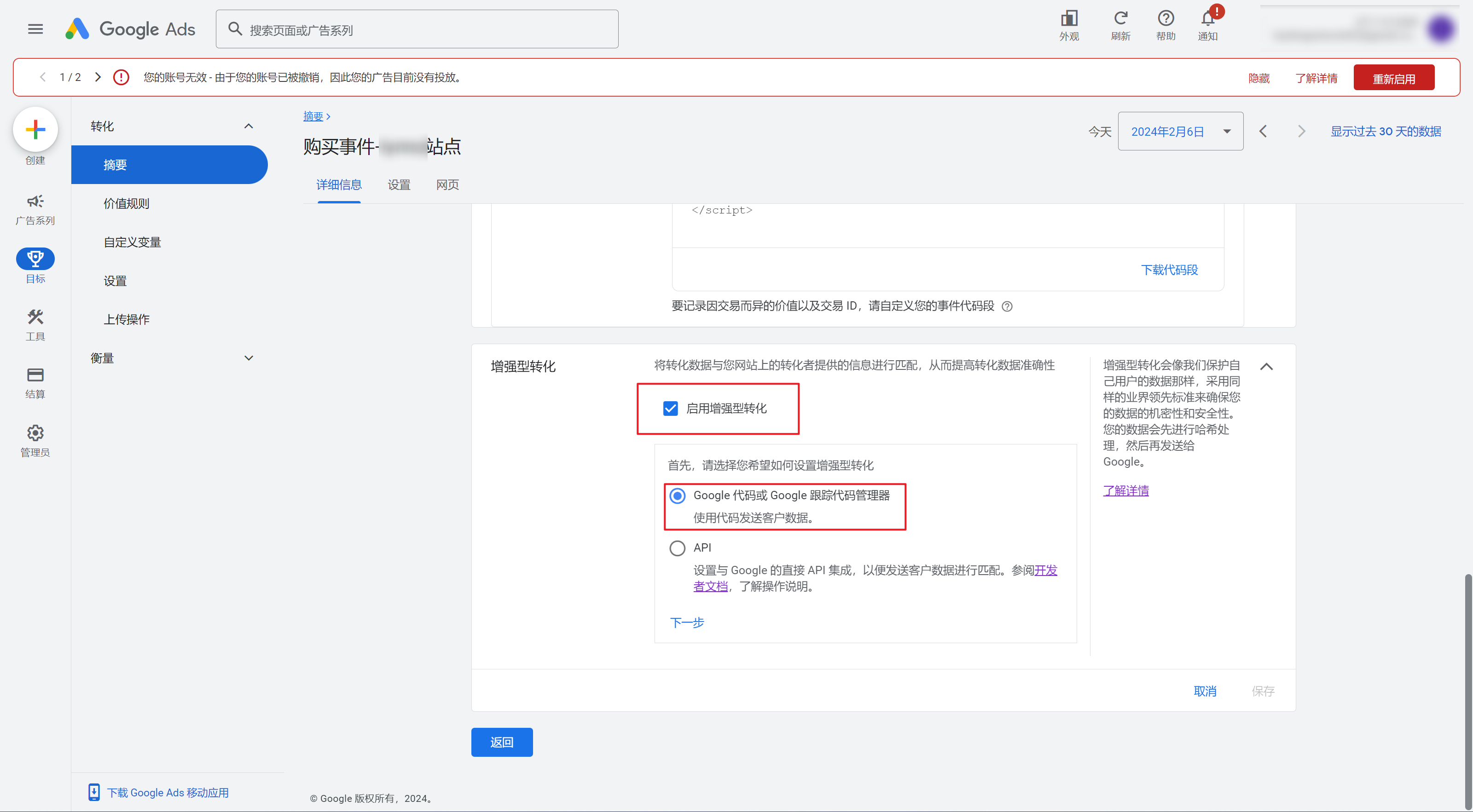 若您需要使用增强型转化,仅需在每个事件中,开启增强型转化即可
