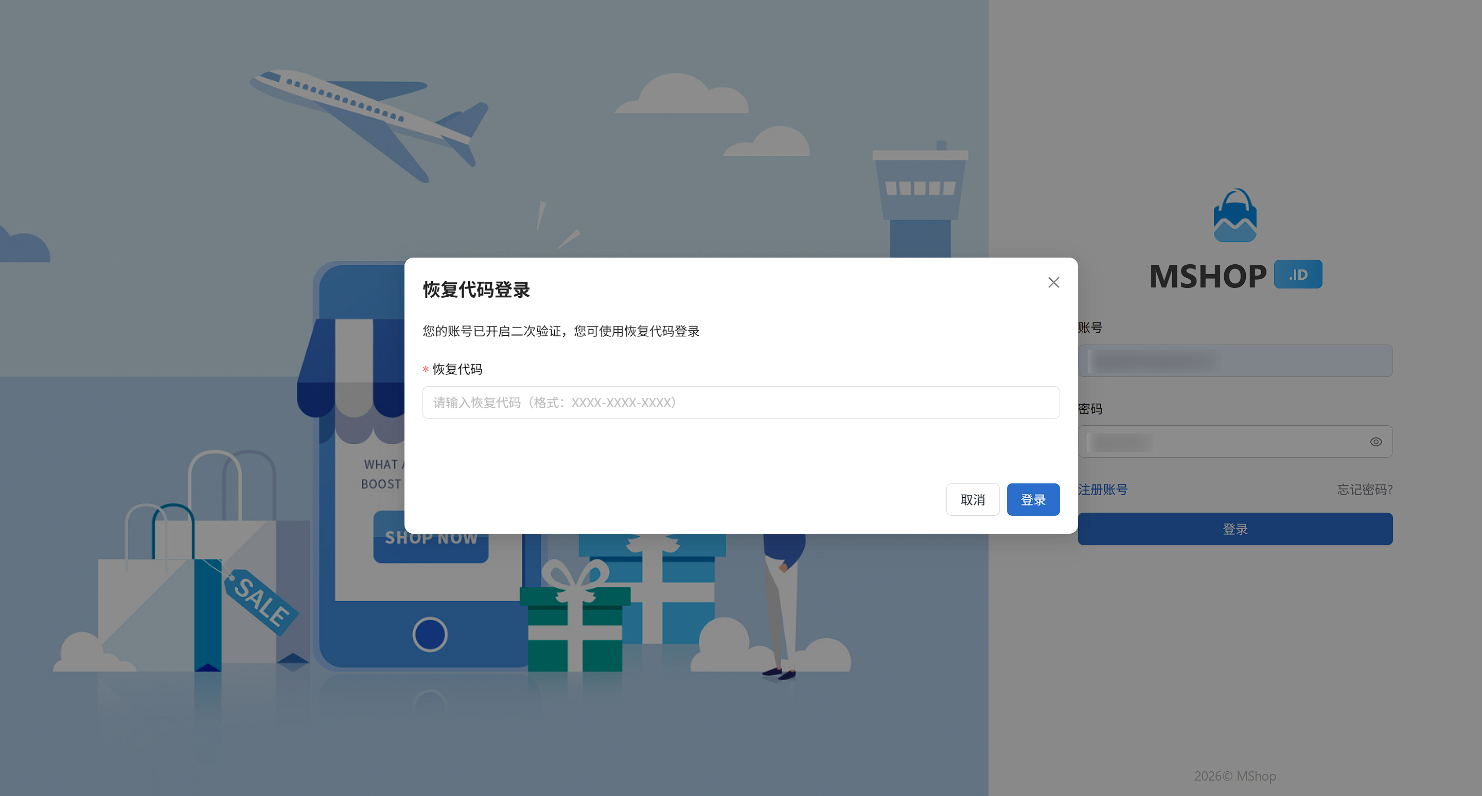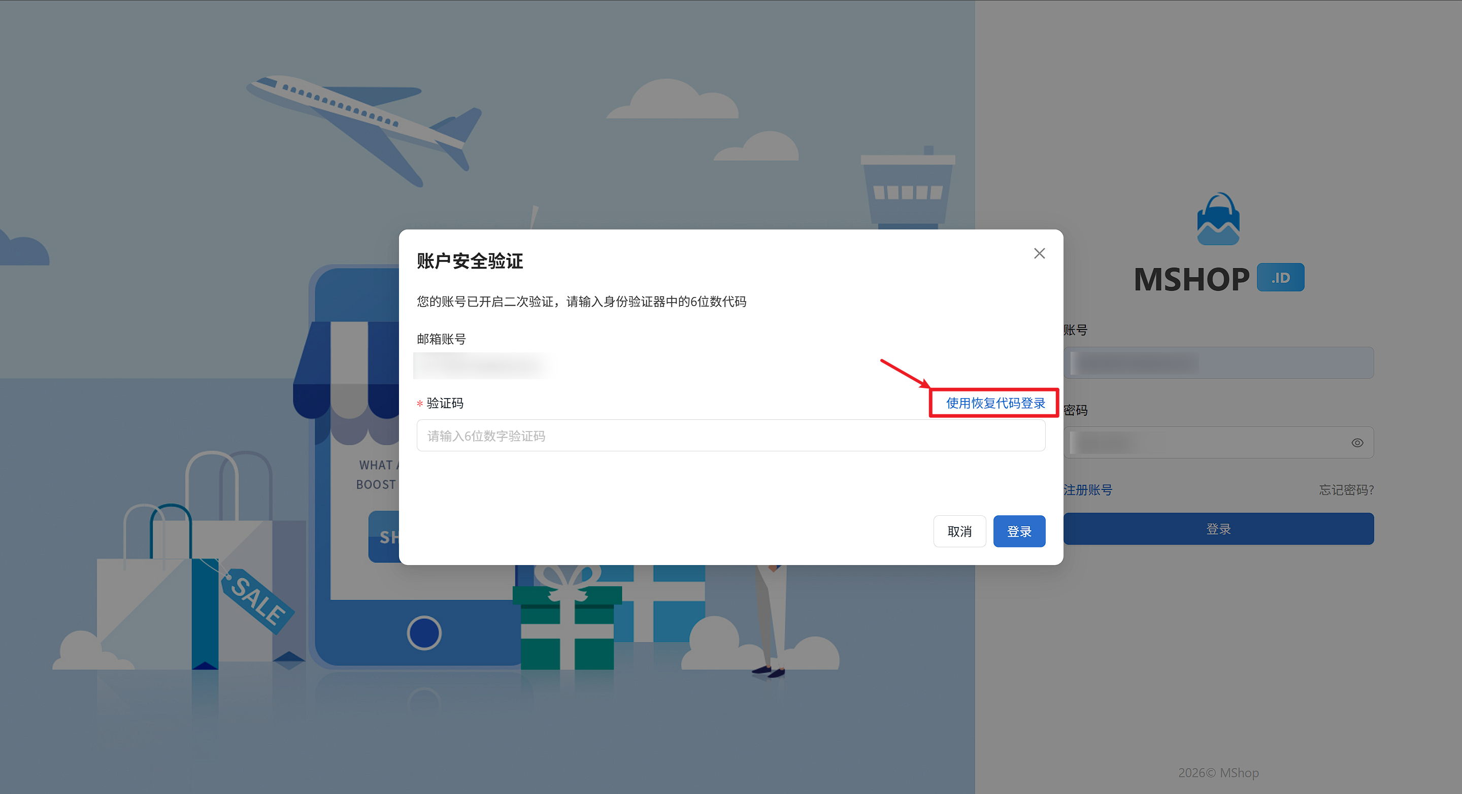 - 可尝试使用恢复代码进行登录