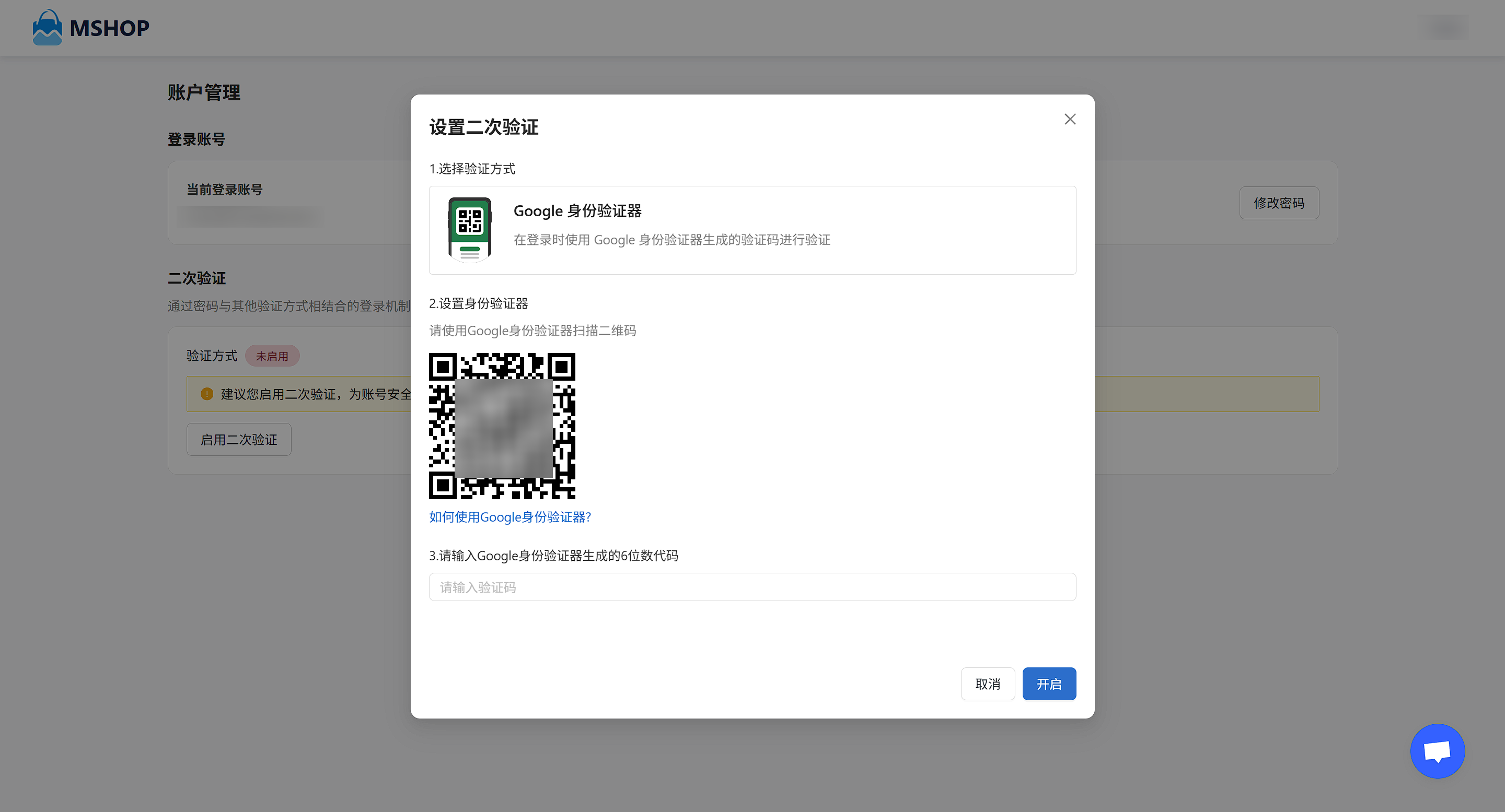- 点击 启用二次验证